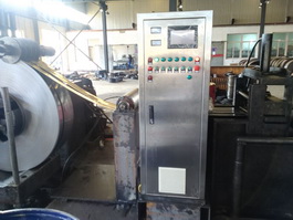 2007年公司通過引進國外先進的靜電涂裝技術,結合國內各類中小型金屬板(帶、絲)冷軋機組的實際應用情況,成功的研發出XCTZ-3型系列金屬板(帶)冷軋靜電涂油機、XCTZ-H101焊絲靜電涂油機、XCTZ-D刀帶靜電涂油機,其高壓力微流量雙流體霧化靜電涂油技術已在國內處于領先地位.每平米0.3克(單面)的涂油量已在實際應用中得到滿意的效果.